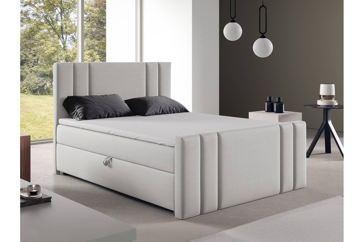 Przykład: Minimalistyczne łóżko kontynentalne bez wezgłowia 140×200 także zostało wyposażone w pojemny schowek – idealny, jeśli potrzebujesz maksymalnie wykorzystać każdy centymetr sypialni. (zobacz model)