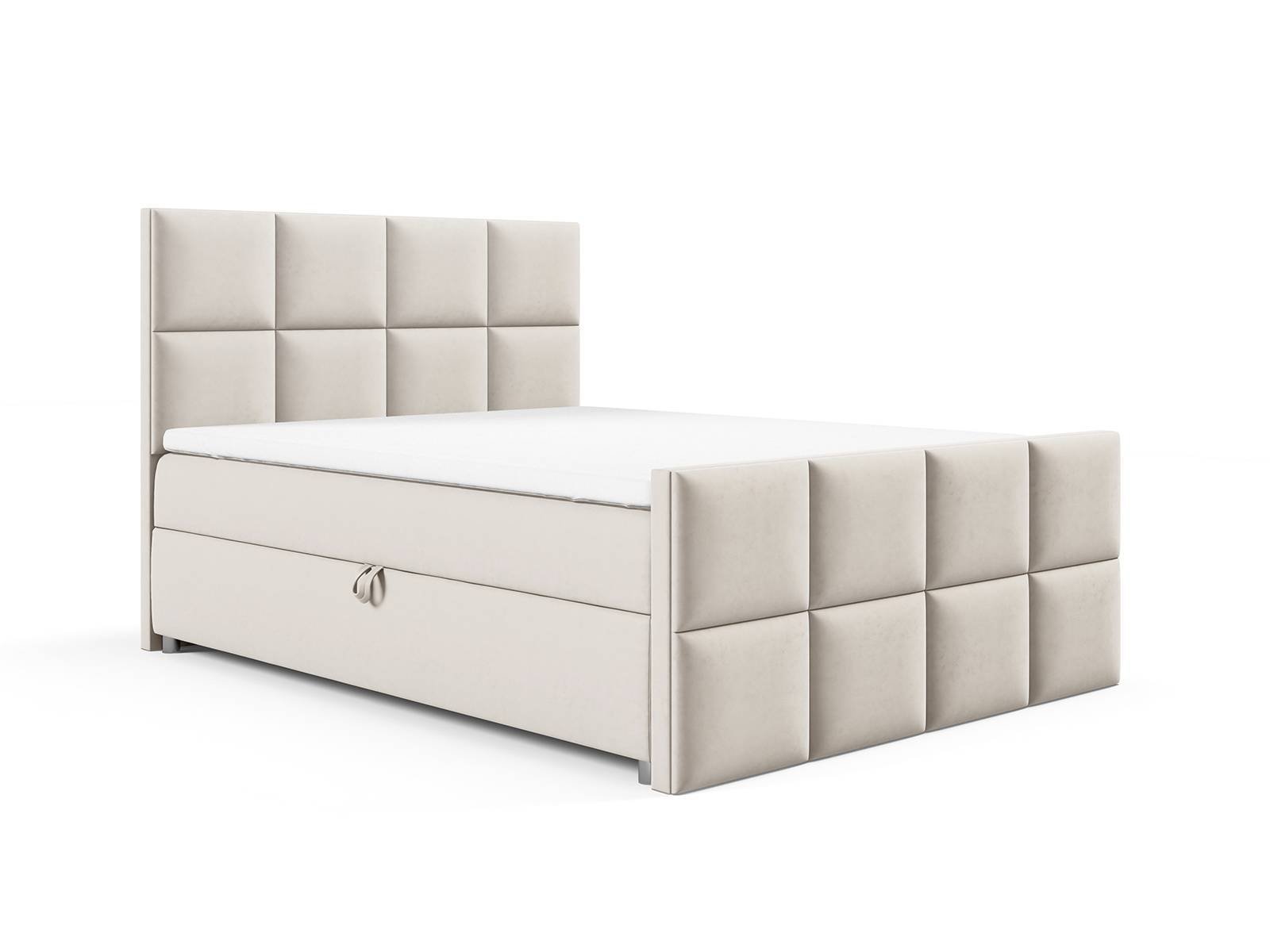 Łóżko kontynentalne z pojemnikiem na pościel to nowoczesny akcent do każdej sypialni. Duże, miękkie panelowe wezgłowie przyciąga wzrok geometryczną formą i dodaje wnętrzu elegancji. Łóżko sypialniane K-2 wyposażone jest wbudowany materac bonellowy, który zapewnia zdrowy i spokojny sen. Dwa praktyczne pojemniki na pościel pomogą Ci utrzymać idealny porządek. Mebel ten to jest idealnym połączeniem eleganckiej formy, komfortu i praktyczności.