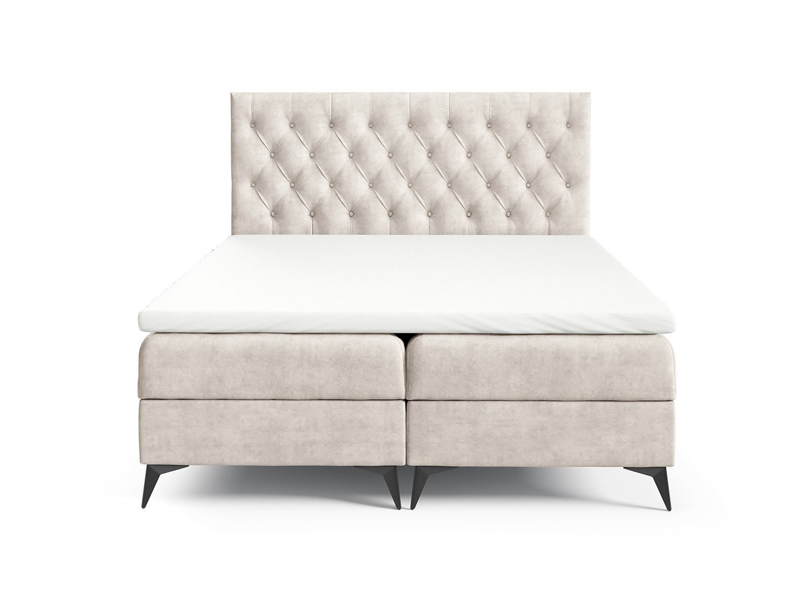 Smukła konstrukcja Dzięki obniżonej konstrukcji i cienkim metalowym nogom w kolorze czarnym, całe łóżko prezentuje się znacznie zgrabniej niż standardowe konstrukcje łóżek kontynentalnych.
