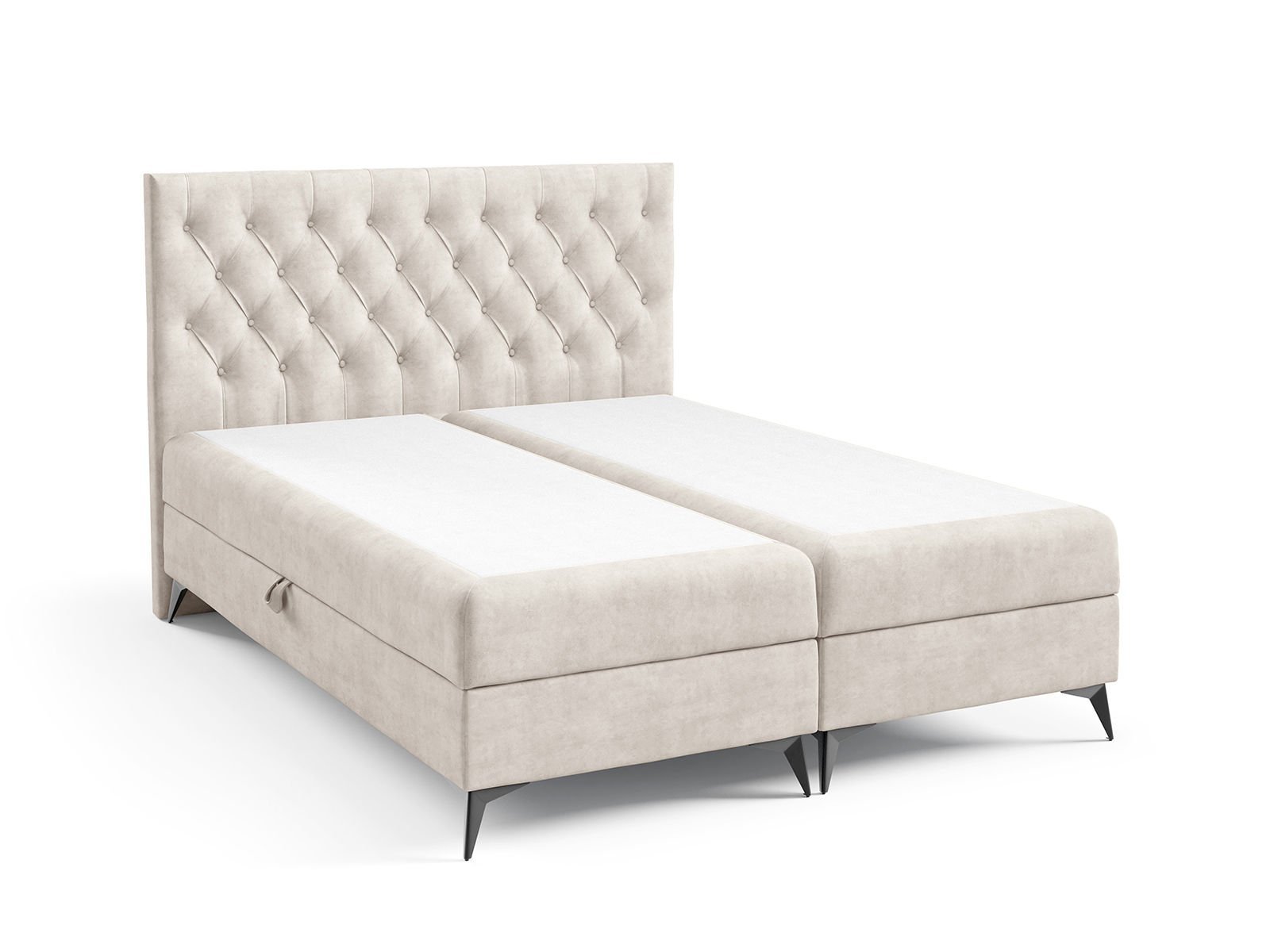 Smukła konstrukcja Dzięki obniżonej konstrukcji i cienkim metalowym nogom w kolorze czarnym, całe łóżko prezentuje się znacznie zgrabniej niż standardowe konstrukcje łóżek kontynentalnych.