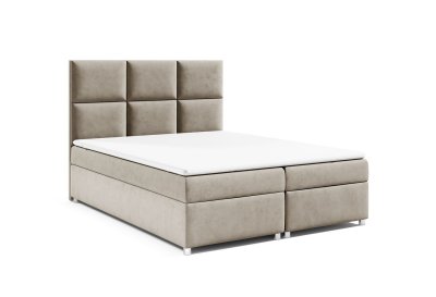 Komfortowy materac Wbudowany materac wykonany z pianki T25 o wysokości 14 cm z wkładem ze sprężyn bonellowych zapewnia odpowiednie podparcie i komfort snu. Łóżko tapicerowane nie zawiera prezentowanego na zdjęciach materaca nawierzchniowego (topper), ten można zakupić dodatkowo w kategorii materace lub w zestawie łóżka kontynentalne z materacem nawierzchniowym.