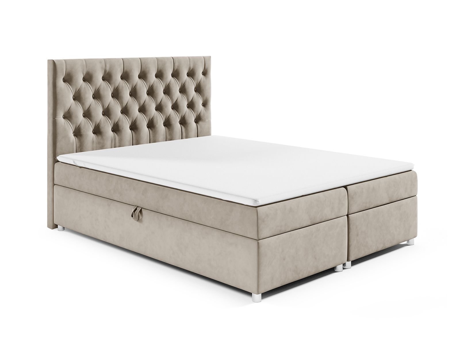 Komfortowy materac Wbudowany materac wykonany z pianki T25 o wysokości 14 cm z wkładem ze sprężyn bonellowych zapewnia odpowiednie podparcie i komfort snu. Łóżko tapicerowane nie zawiera prezentowanego na zdjęciach materaca nawierzchniowego (topper), ten można zakupić dodatkowo w kategorii materace lub w zestawie łóżka kontynentalne z materacem nawierzchniowym.