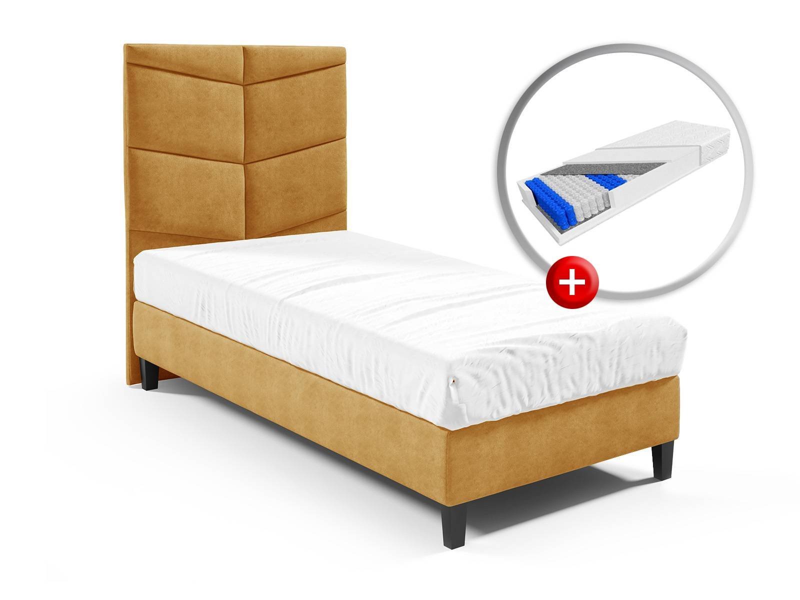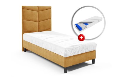 Łóżko hotelowe w zestawie z materacem kieszeniowym KARO PREMIUM to doskonałe rozwiązanie dla osób poszukujących połączenia trwałości i wygody na najwyższym poziomie. Model łóżka hotelowego BRISTOL wyróżnia się starannym wykonaniem, kompaktowymi wymiarami 90x200 cm oraz wyjątkowym zagłówkiem, który jest tapicerowany miękką i przyjemną w dotyku tkaniną. Jego harmonijny, elegancki wygląd pasuje zarówno do klasycznych, jak i nowoczesnych wnętrz, nadając im ciepły i stylowy charakter.