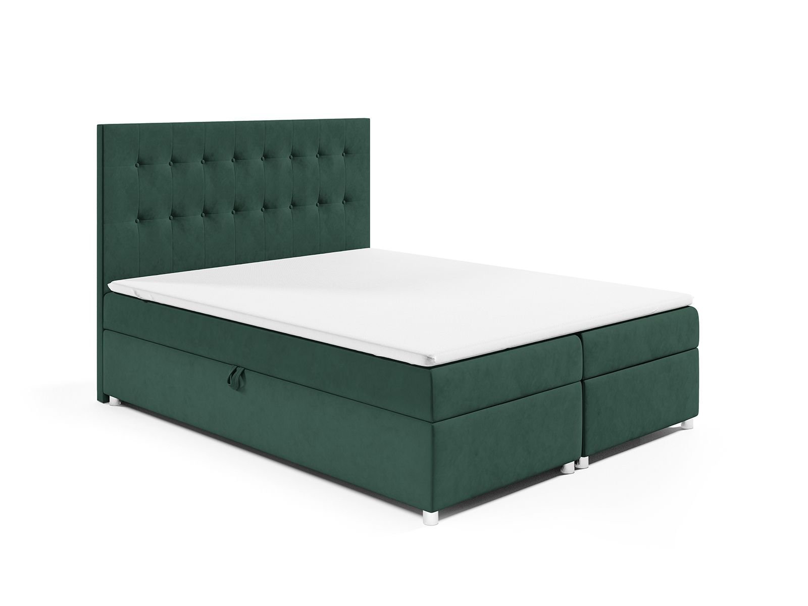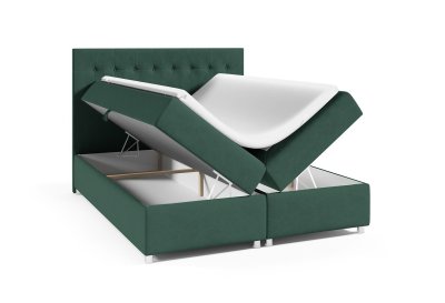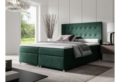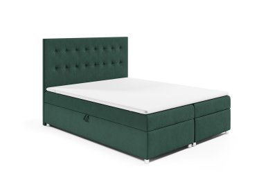 Dwuosobowe łóżko kontynentalne posiada wbudowany materac bonellowy zapewnia optymalne podparcie ciała, umożliwiając zdrowy i komfortowy sen. Łóżko z podwójnym pojemnikiem na pościel pozwala na wygodne przechowywanie, pomagając utrzymać porządek w sypialni. Ręcznie szyte, miękkie wezgłowie ozdobione poziomymi przeszyciami gwarantuje wygodne oparcie podczas czytania czy oglądania telewizji. Stabilna konstrukcja, rama z solidnego drewna oraz laminowanej płyty zapewniają trwałość na lata. Tkanina antypoślizgowa ANTI-SLIP zapobiega przesuwaniu się materaca, zwiększając komfort użytkowania.