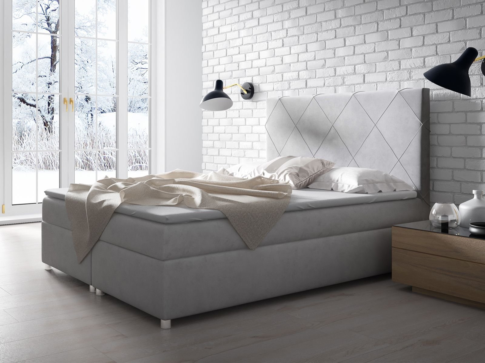 1x Eleganckie łóżko kontynentalne K-7 z pikowanym zagłowiem 200x200