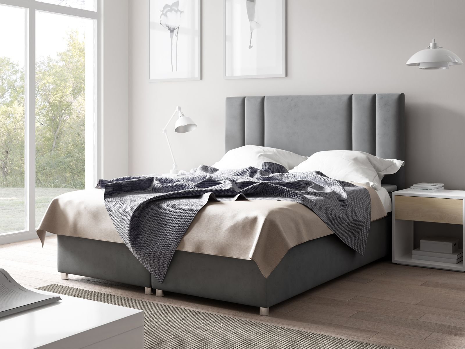 1x Łóżko K-8 typu boxspring z materacem i zagłówkiem 140x200