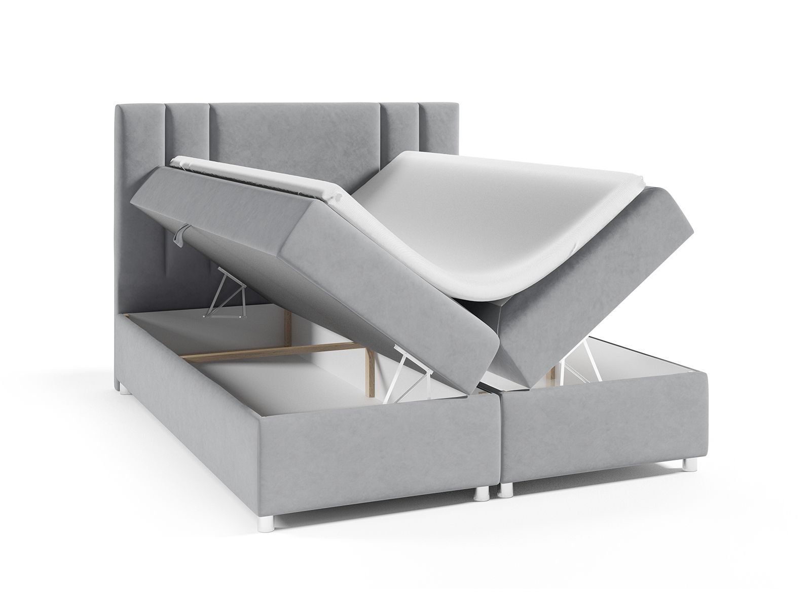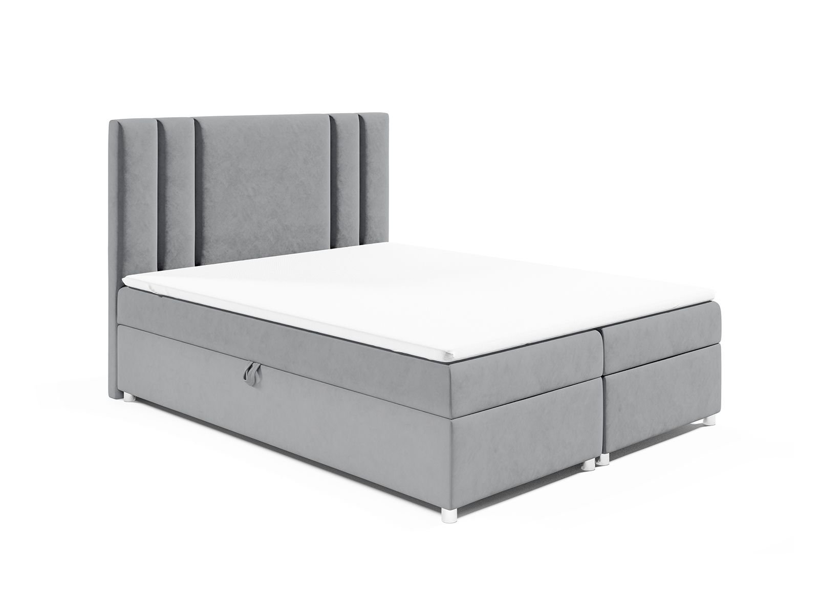 Dwuosobowe łóżko kontynentalne posiada wbudowany materac bonellowy zapewnia optymalne podparcie ciała, umożliwiając zdrowy i komfortowy sen. Łóżko z podwójnym pojemnikiem na pościel pozwala na wygodne przechowywanie, pomagając utrzymać porządek w sypialni. Ręcznie szyte, miękkie wezgłowie ozdobione poziomymi przeszyciami gwarantuje wygodne oparcie podczas czytania czy oglądania telewizji. Stabilna konstrukcja, rama z solidnego drewna oraz laminowanej płyty zapewniają trwałość na lata. Tkanina antypoślizgowa ANTI-SLIP zapobiega przesuwaniu się materaca, zwiększając komfort użytkowania.