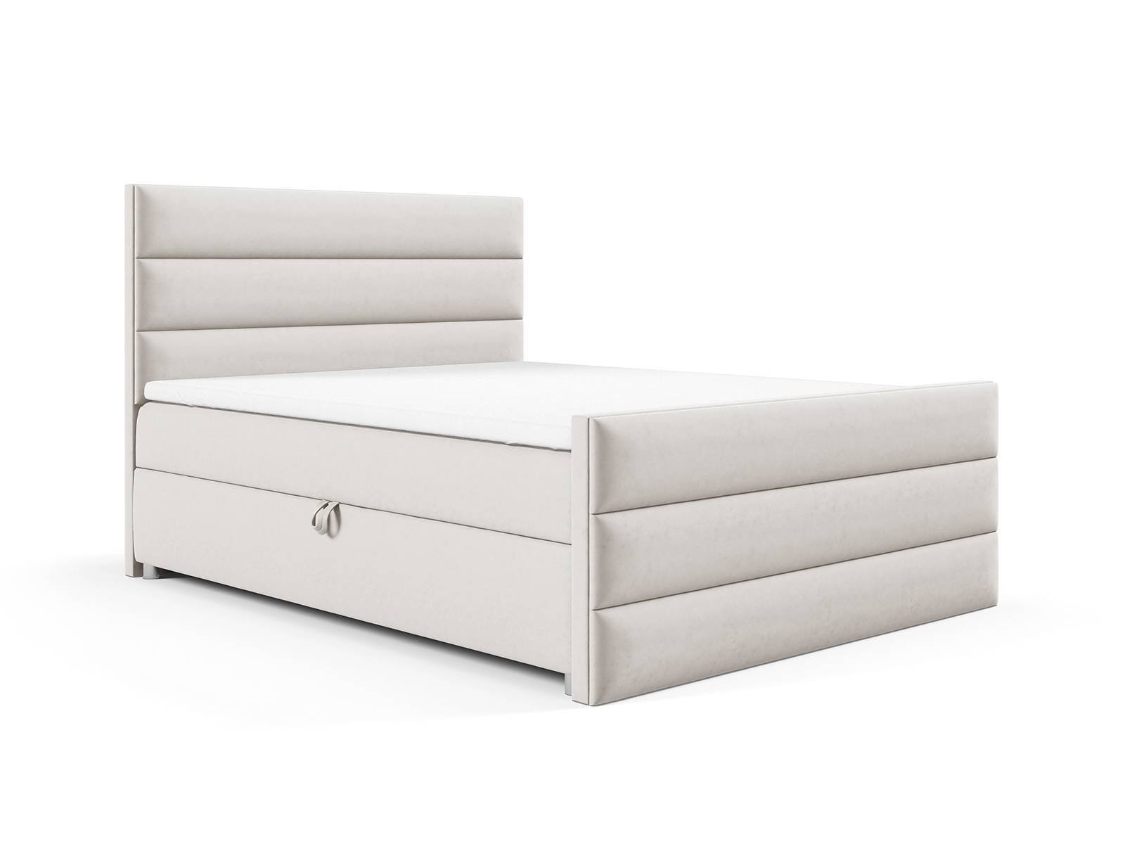 Dwuosobowe łóżko kontynentalne posiada wbudowany materac bonellowy zapewnia optymalne podparcie ciała, umożliwiając zdrowy i komfortowy sen. Łóżko z podwójnym pojemnikiem na pościel pozwala na wygodne przechowywanie, pomagając utrzymać porządek w sypialni. Ręcznie szyte, miękkie wezgłowie ozdobione poziomymi przeszyciami gwarantuje wygodne oparcie podczas czytania czy oglądania telewizji. Stabilna konstrukcja, rama z solidnego drewna oraz laminowanej płyty zapewniają trwałość na lata. Tkanina antypoślizgowa ANTI-SLIP zapobiega przesuwaniu się materaca, zwiększając komfort użytkowania.