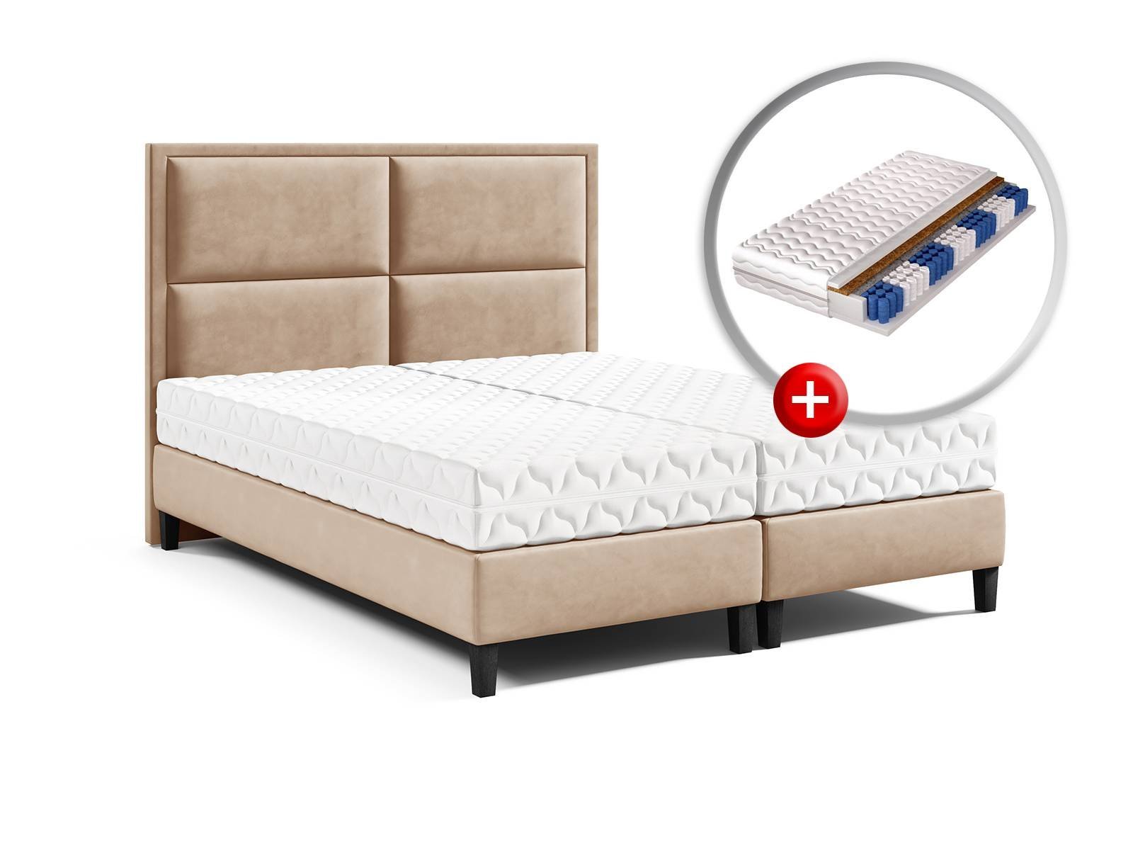 Do zestawu dołączony został wysokiej jakości materac kieszeniowy 140x200 KARO z wkładką kokosową, który jest idealnym uzupełnieniem tego eleganckiego łóżka. Materac ten zapewnia elastyczność punktową, dzięki czemu doskonale dopasowuje się do kształtu ciała użytkownika, wspierając zdrowy i komfortowy sen. Dodatkowo wkładka kokosowa, wykonana z naturalnych materiałów, zwiększa przewiewność materaca, co sprzyja utrzymaniu higieny i poprawia jego trwałość. Połączenie tych cech sprawia, że materac KARO jest wygodny, funkcjonalny i przyjazny zarówno dla użytkownika, jak i środowiska.